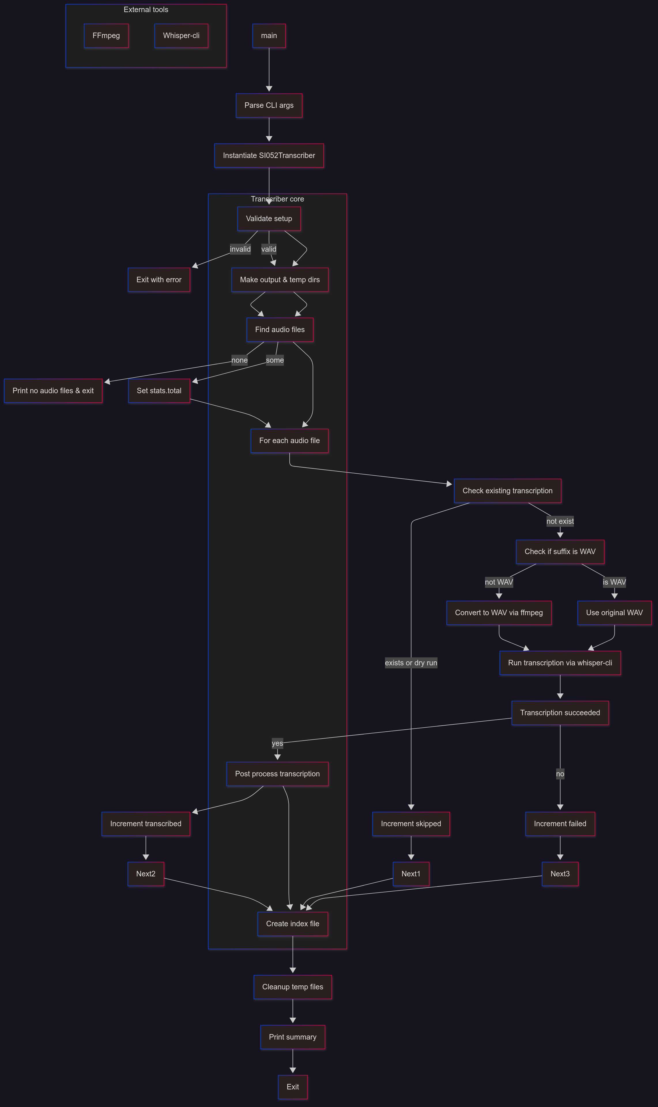 - Run Whisper-CLI to transcribe audio